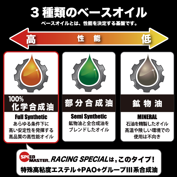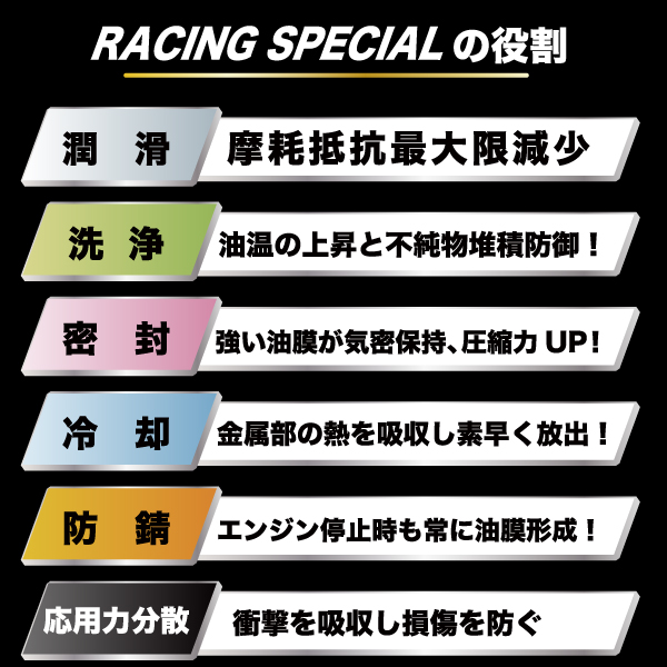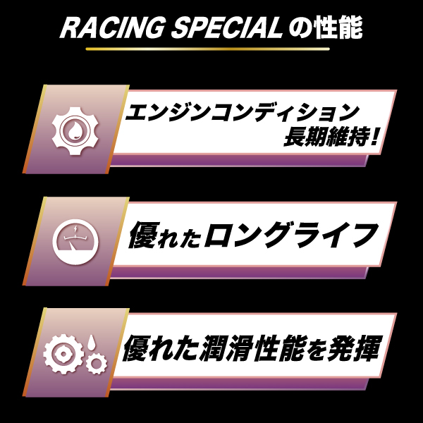- > RACING SPECIAL【5W-50】4L 特殊エステル材高配合+PAO 100%化学合成油