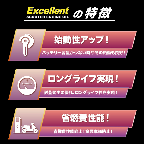 小型スクーター ~ 大型スクーター 4ストロークエンジンオイル Excellent(エクセレント)【5W-40】100%化学合成油