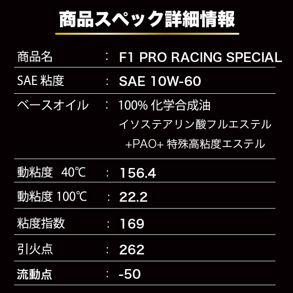 - > F1 PRO RACING SPECIAL【10W-60】16L 特殊高粘度エステル 化学合成油