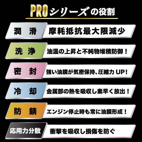 通常あまりエンジンオイルでは使用されない密度の高い原材料をメインに構成することで、超高温状態でも油圧低下を抑制します。