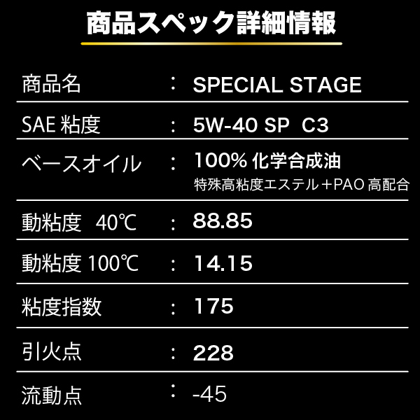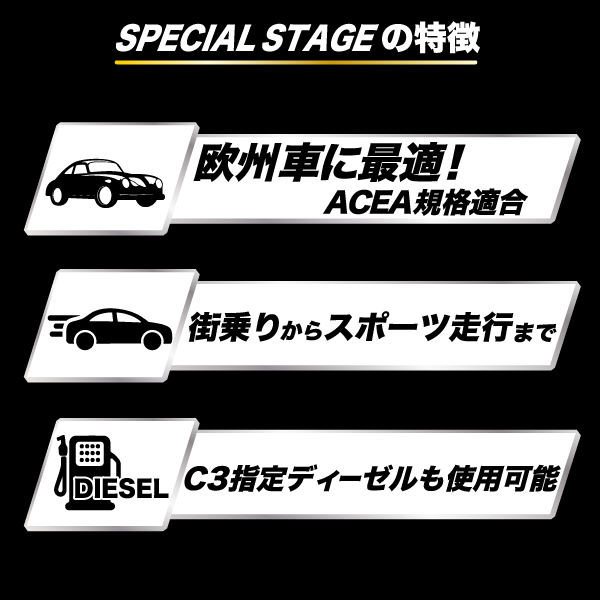 - > SPECIAL STAGE【5W-40 SP】 4L C3 特殊エステル材高配合