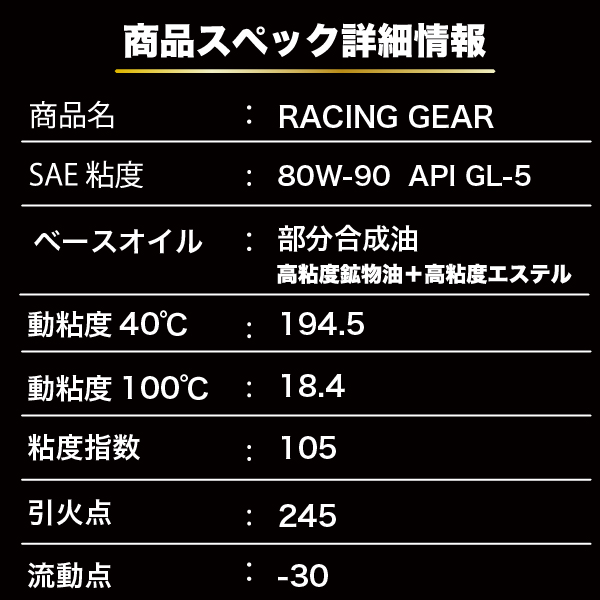 【RACING GEAR 【80W-90】GL-5の特徴】