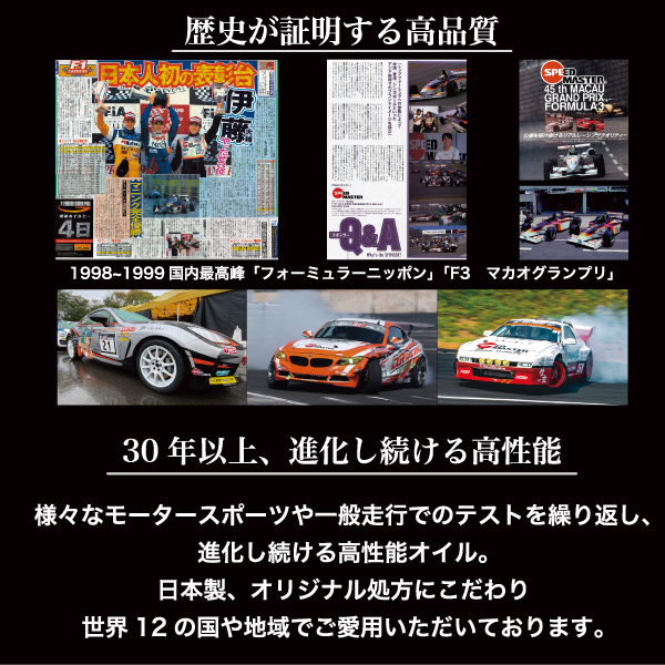今まで使っていた有名メーカーの商品は化学合成油で高性能の文句でしたが、耐久レースでは全くもたなっかた↓またそのような商品も無かった。スピードマスターは数少ないユーザーの為のオイルを作ってくれていて本当にありがたい☆ このネットサイトだとポイントも付くしこれからは全部スピードマスターにして上位に入れる様に頑張ります!!! -