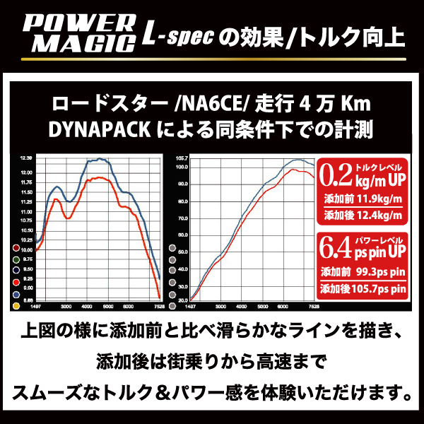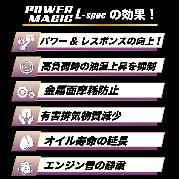 - > POWER MAGIC L-spec 体感できるエンジンオイル添加剤『ライトバージョン』!