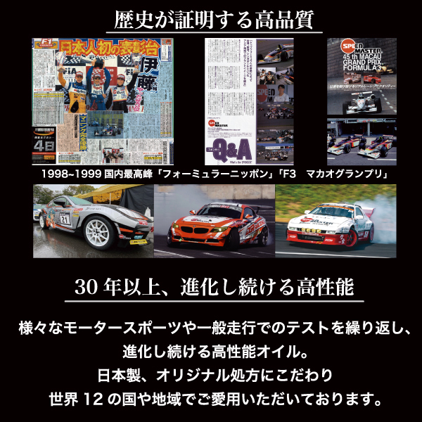 また、ターボ車等のオイルへの負担が大きいエンジンコンディション維持や通勤渋滞等での頻繁なストップ&ゴーやサンデードライバーのコールドスタートと言った負荷からのエンジン保護に最適です。