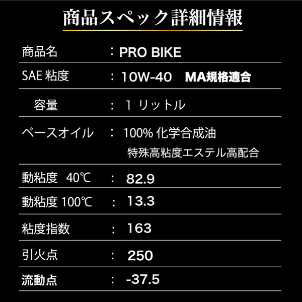 - > PRO BIKE 【10W-40 MA】 1L 特殊高粘度エステルベース 100%化学合成油