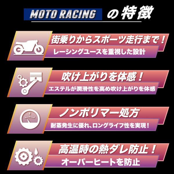 - > MOTO RACING 15W-50 1L 高粘度エステルベース 100%化学合成油