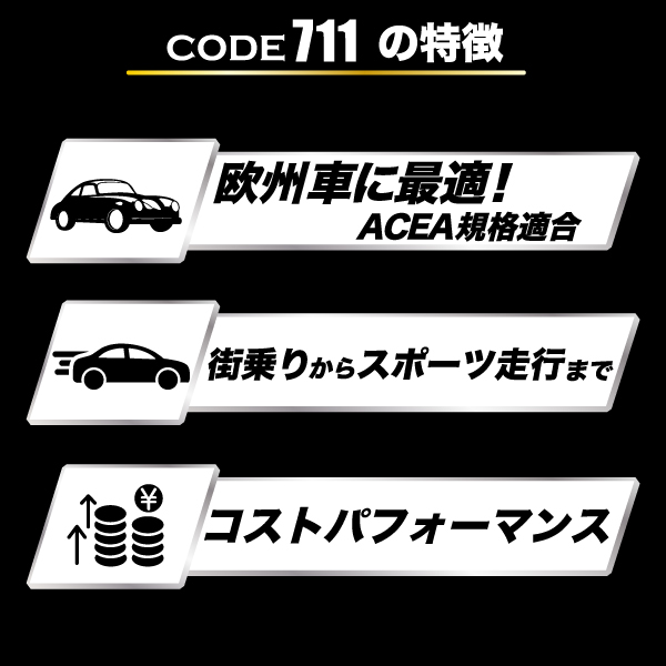 - > CODE711【5W-40】A3/B4/C3 1L 100%化学合成油 ACEA規格適合