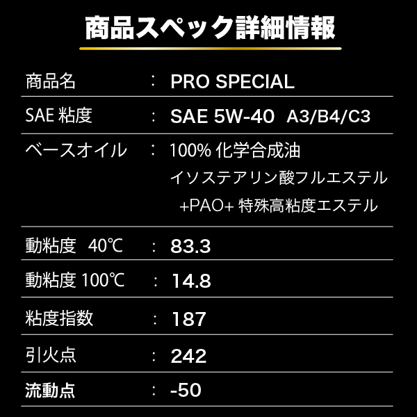 - > PRO SPECIAL【5W-40】5L 高粘度エステル+高粘度PAO 他 100%化学合成油