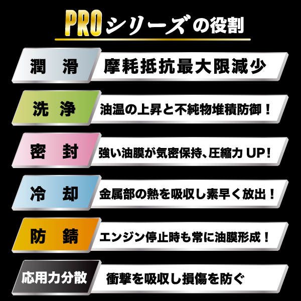 通常あまりエンジンオイルでは使用されない密度の高い原材料をメインに構成することで、超高温状態でも油圧低下を抑制します。